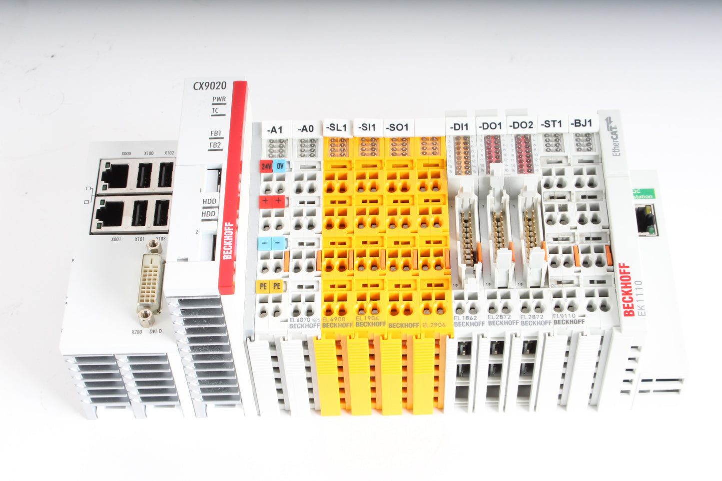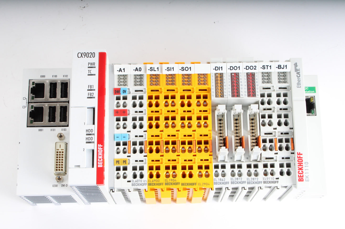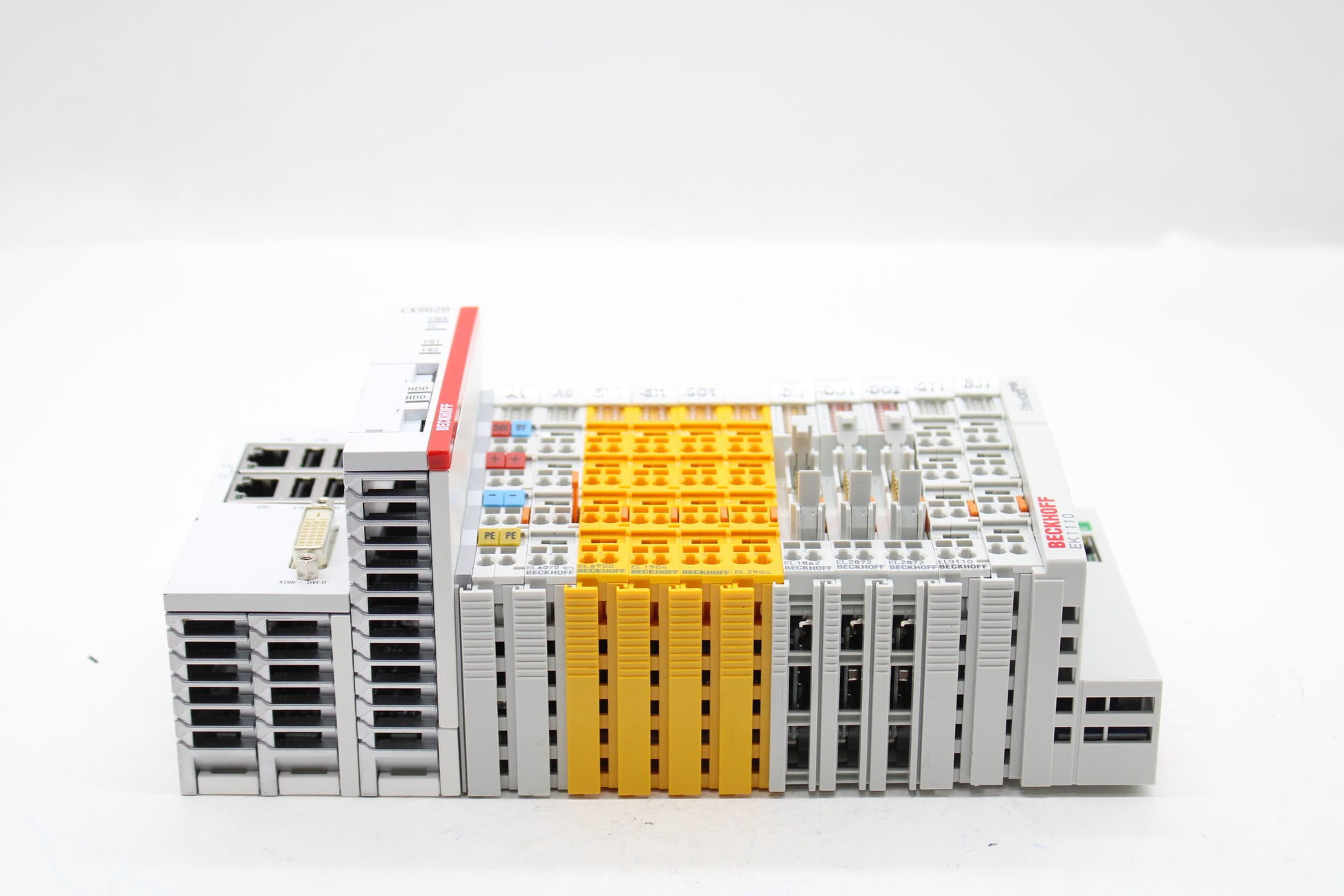 Includes CX9020-0115 Basic CPU module + EL6070, EL6900, EL1904, EL2904, EL1862, 2x EL2872, EL9110, EK1110 as pictured. No additional items or accessories are included.