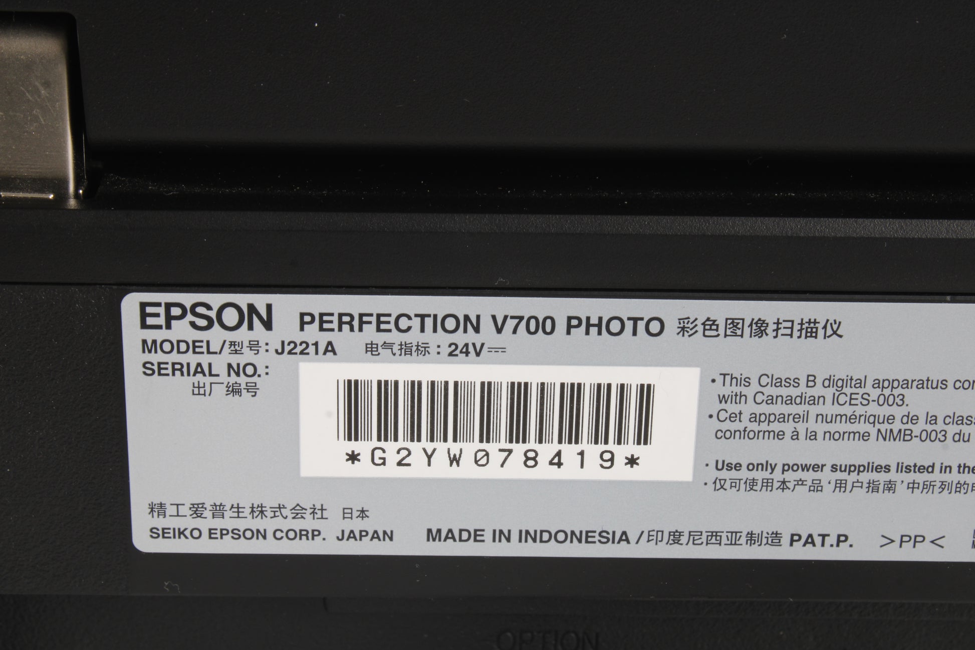 Epson V700 Perfection Photo Scanner Professional-Quality J221A W/ Power Supply