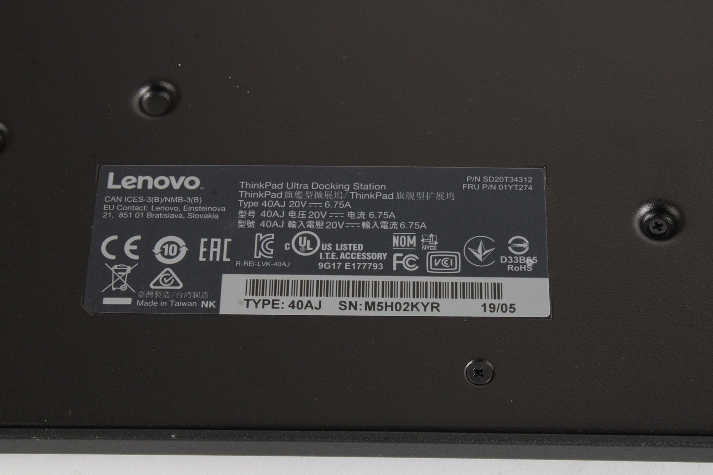 Lenovo ThinkPad Pro Ultra Docking Station 40AJ 01YT274 W/ Lenovo 135W AC Adapter