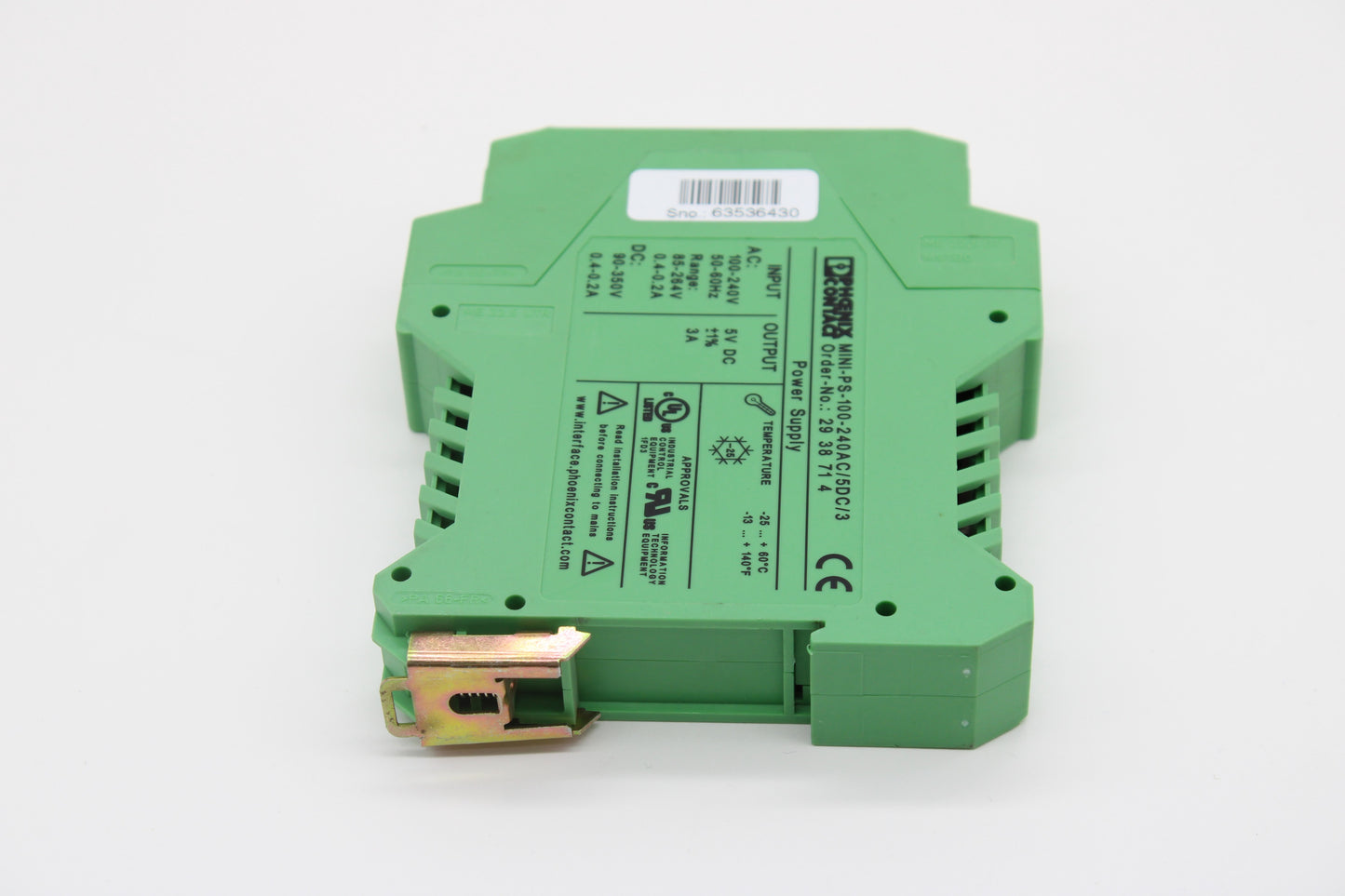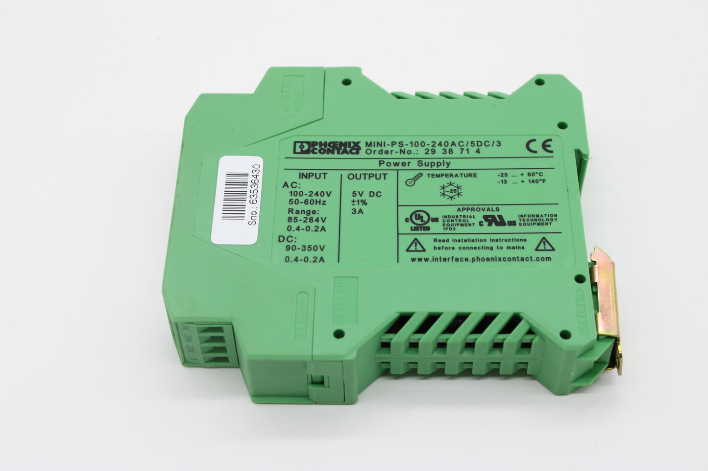 Phoenix Contact 2938714 / MINI-PS-100-240AC/5DC/3 Din Rail Power Supply