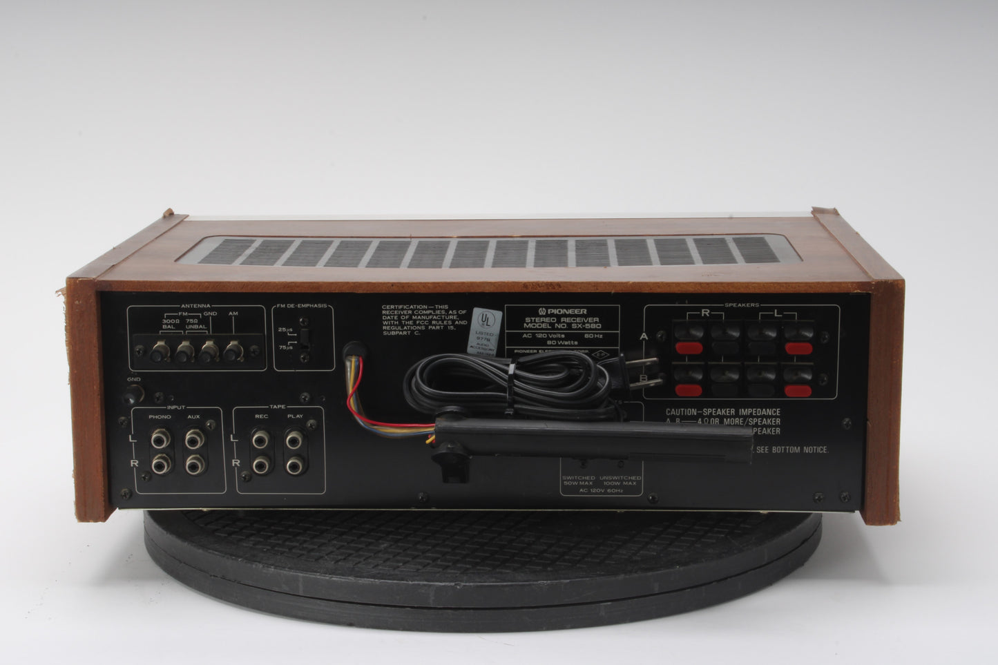 Unit powers on, but audio output is very weak and case has some peeling. For this reason, we are selling the unit AS-IS for parts/repair as a non-working or incomplete unit.
