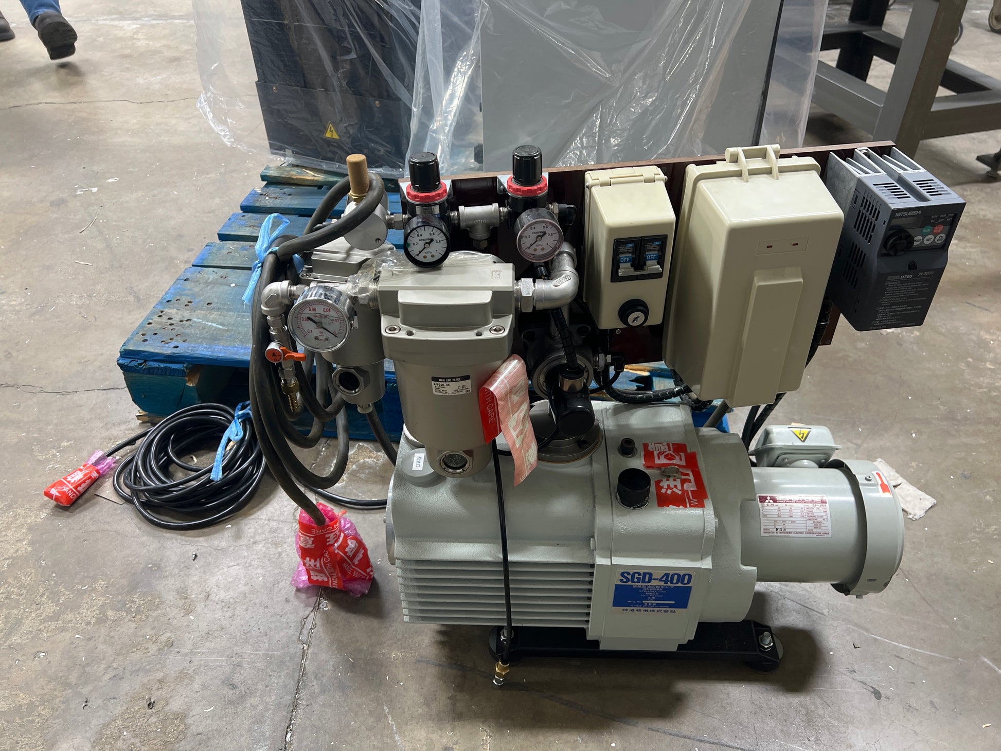 Shinko Seiki SGD-400 Vacuum Pump W/ Extras, Mitsubishi FR-D700 AMD350-03 Mist