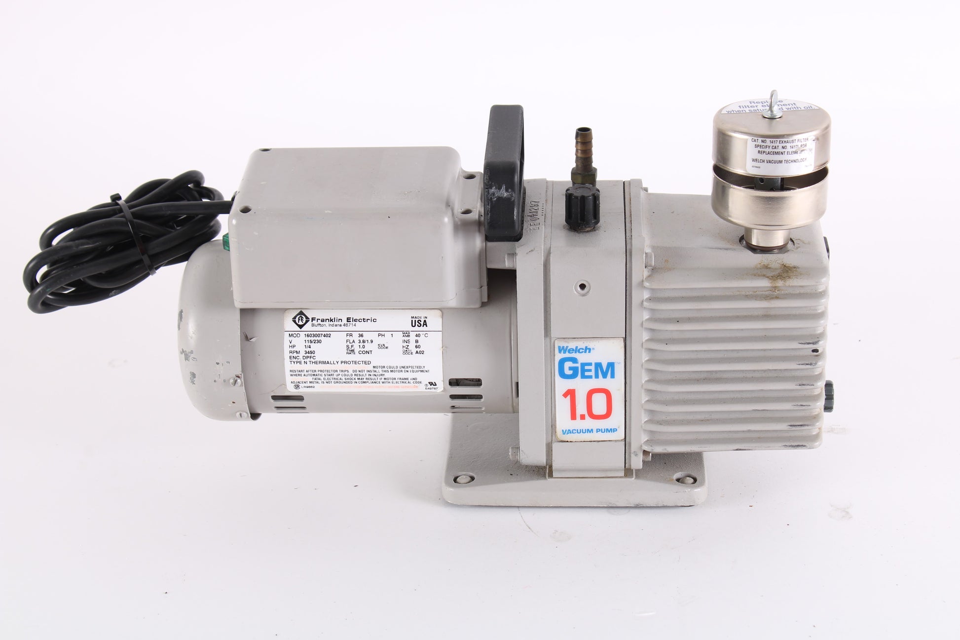 Welch 8890 8890A Vacuum Pump W/ Franklin 1603007402 Motor W/ Exhaust Filter